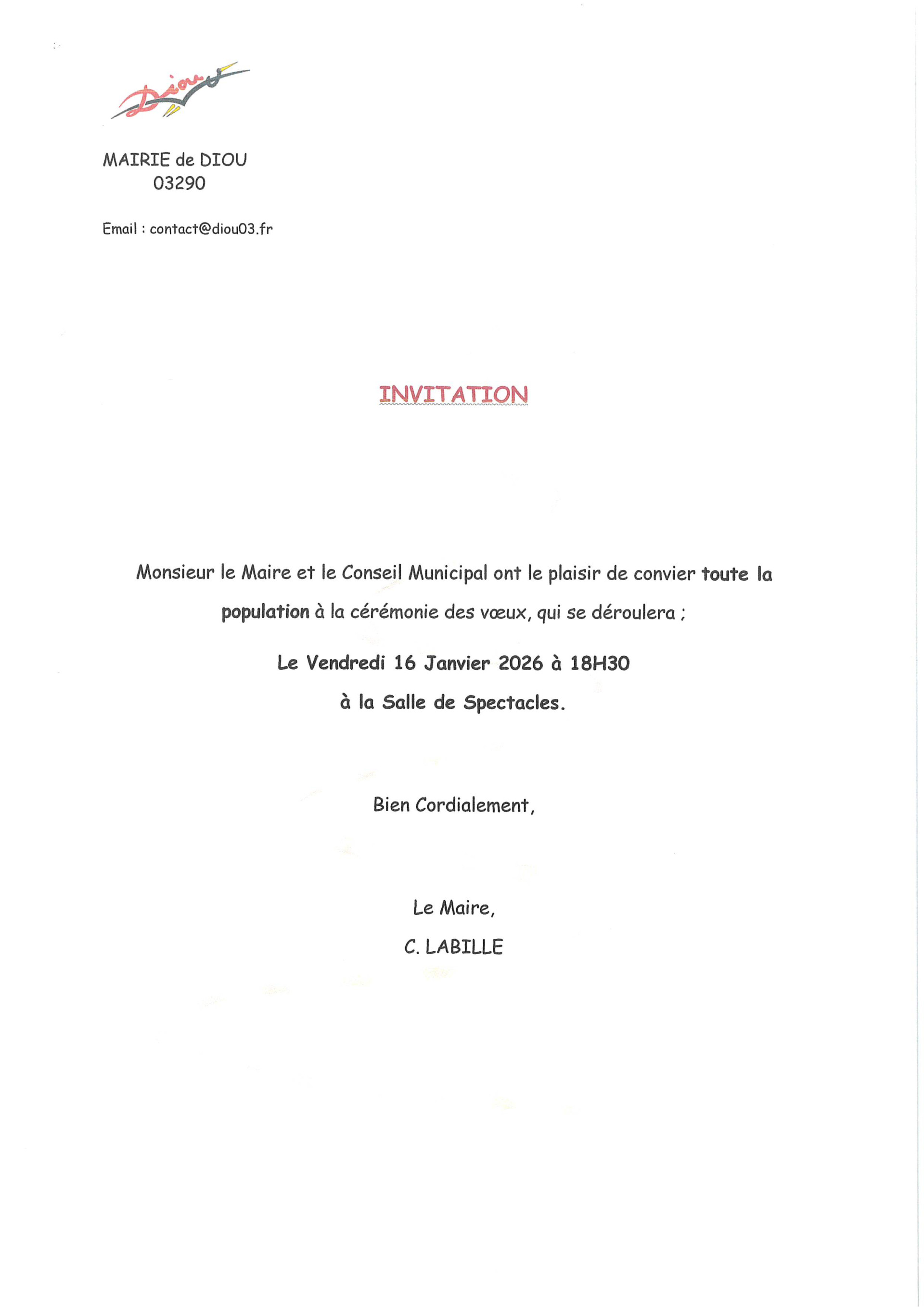 CEREMONIE DES VOEUX LE VENDREDI 16 JANVIER 2026